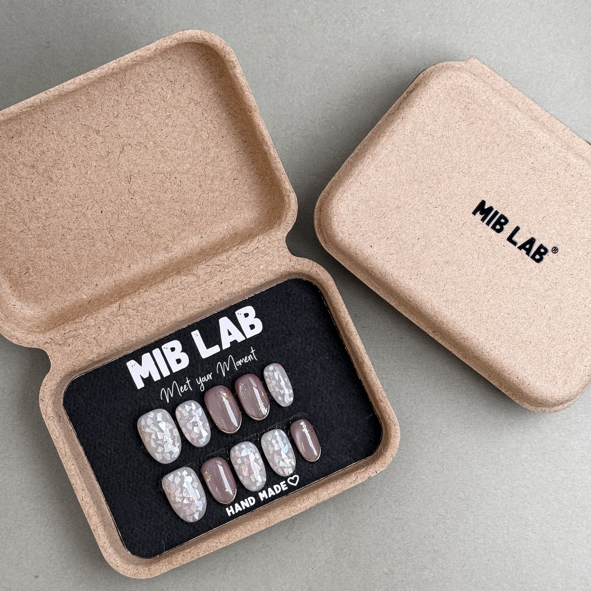 Coffret MIB LAB Merci avec press on nails premium réutilisables nude, kit complet, retrait à Genève et livraison en Suisse.